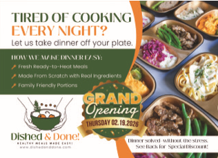 Help Dished & Done celebrate their new location with a grand opening event. There will be a ribbon-cutting at 11:30.